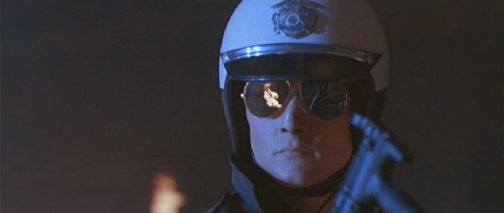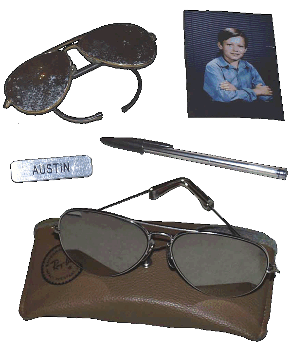 2 pairs of chromeplated shades, a pen, a nametag and a picture of John Connor