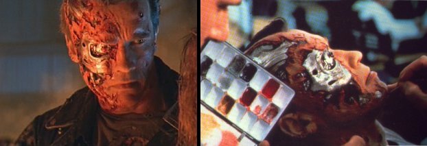 Arnie's prosthetic face makeup stage 5/6, made of various materials, not shown is the cable for the LED.
